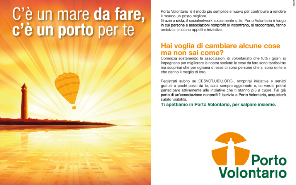 Con l'aiuto di una nuova piattaforma social, pensata per il sociale (uidu.org), Cesvot vuol lanciare un'iniziativa per il reclutamento di volontari. L'obiettivo è duplice: creare una rete di persone sensibili ai temi del volontariato e dar loro strumenti adeguati per conoscere la realtà dell'associazionismo e aiutare le associazioni a venire in contatto con nuovi potenziali volontari. Il progetto ha bisogno innanzi tutto di un nome, di un logo e poi di una campagna di comunicazione istituzionale.